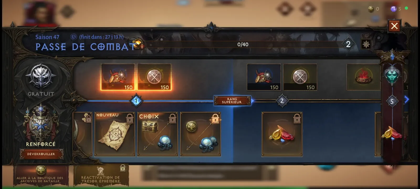 Amélioré (Premium) : version payante qui débloque une deuxième ligne de récompenses à chaque palier, souvent plus intéressantes.